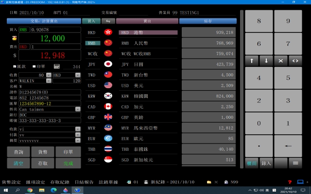 交易介面 貨幣顯示牌 註銷交易 切換櫃面/錄入